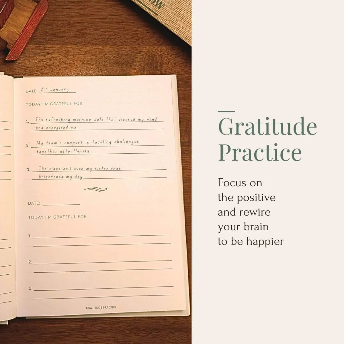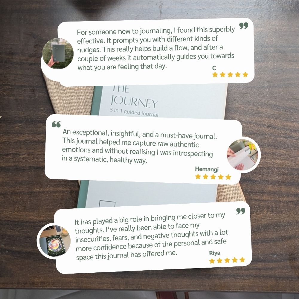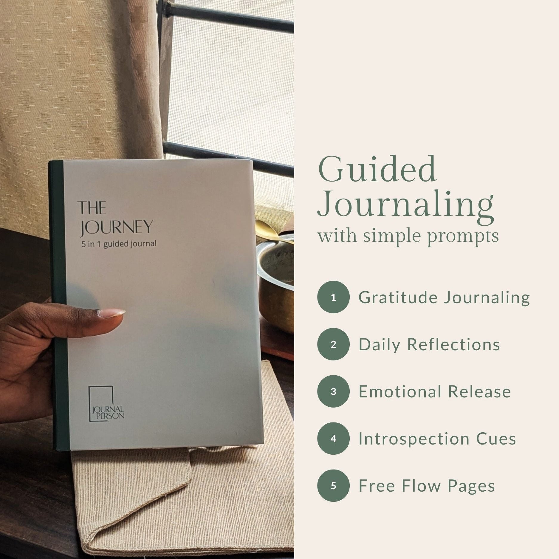 - Journaling beginner? Gentle prompts guide you through five different journaling practices—no blank page anxiety